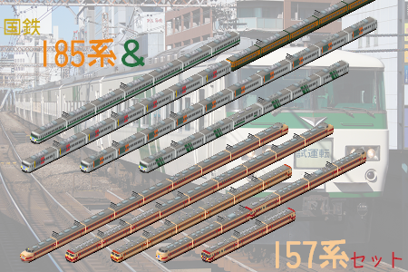 関東近郊の行楽輸送で主に活躍した185系と157系のセットです。161系も付属します。